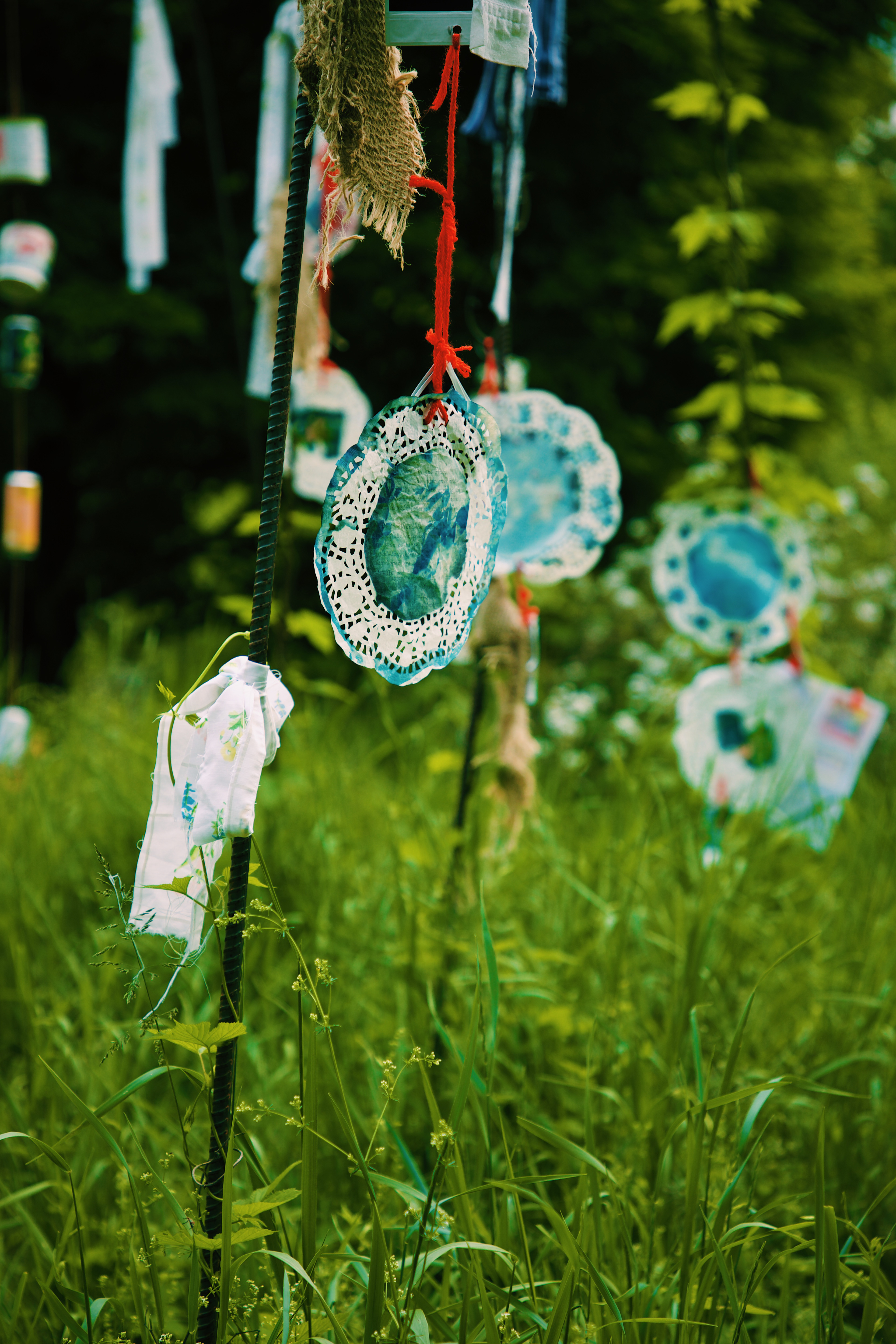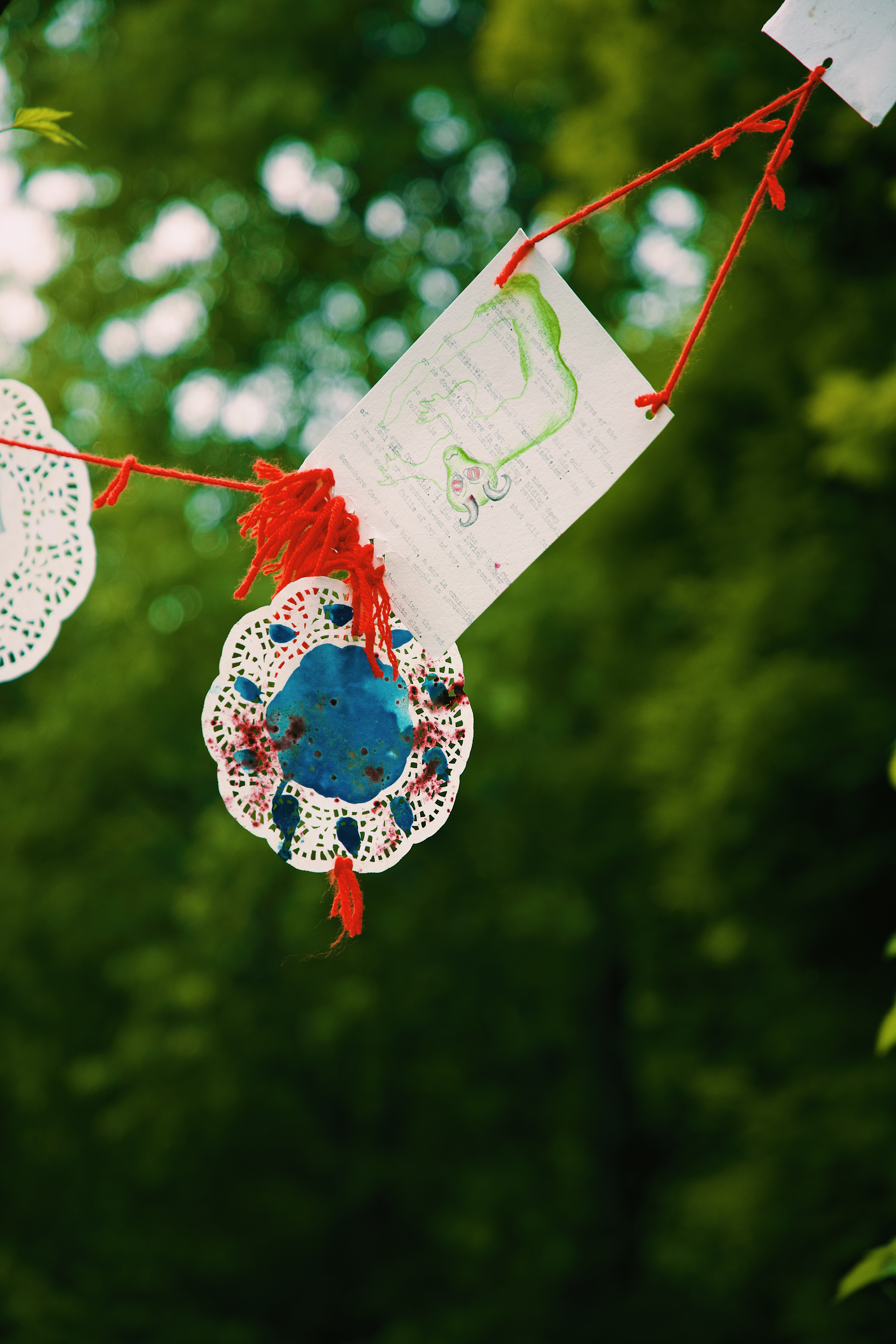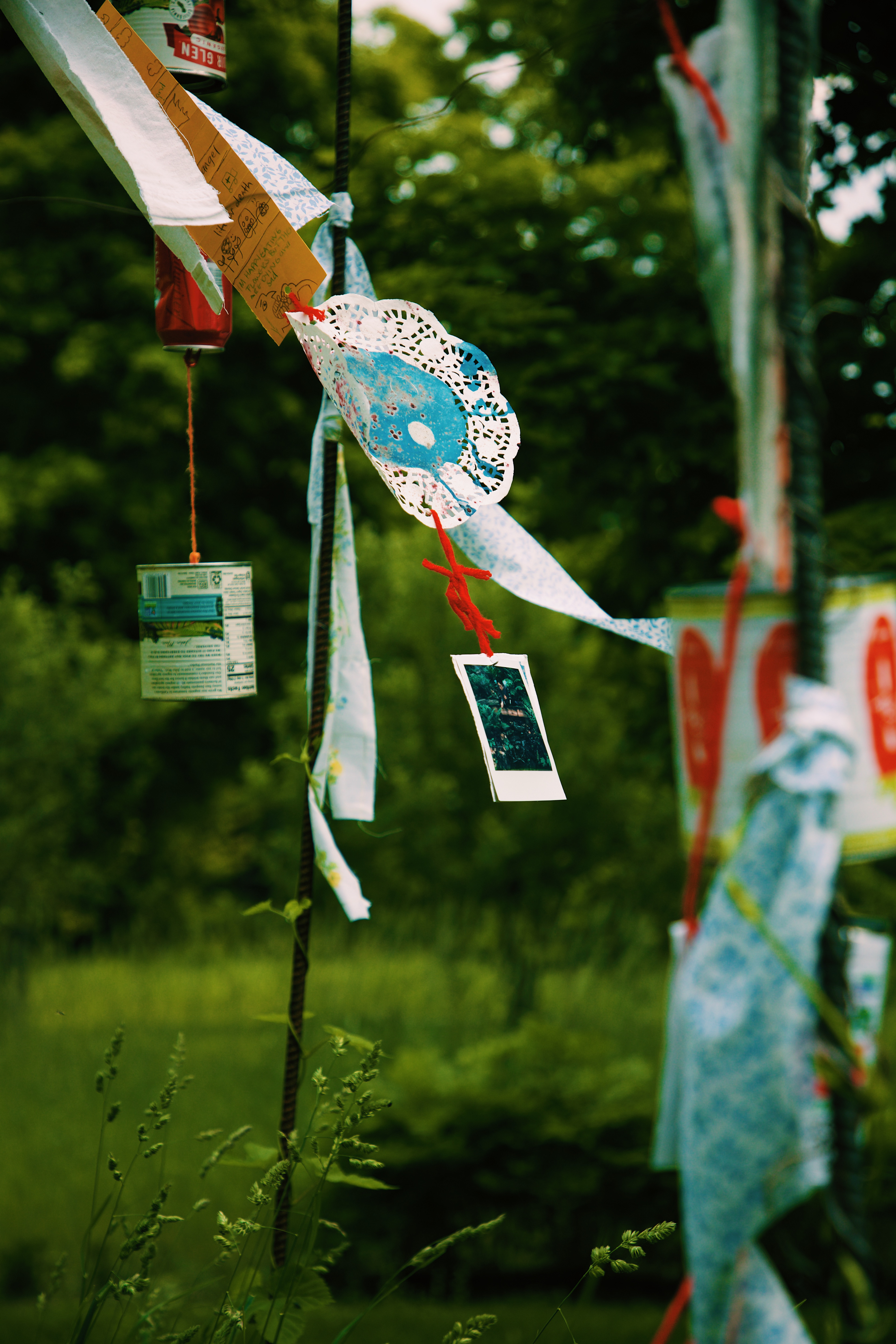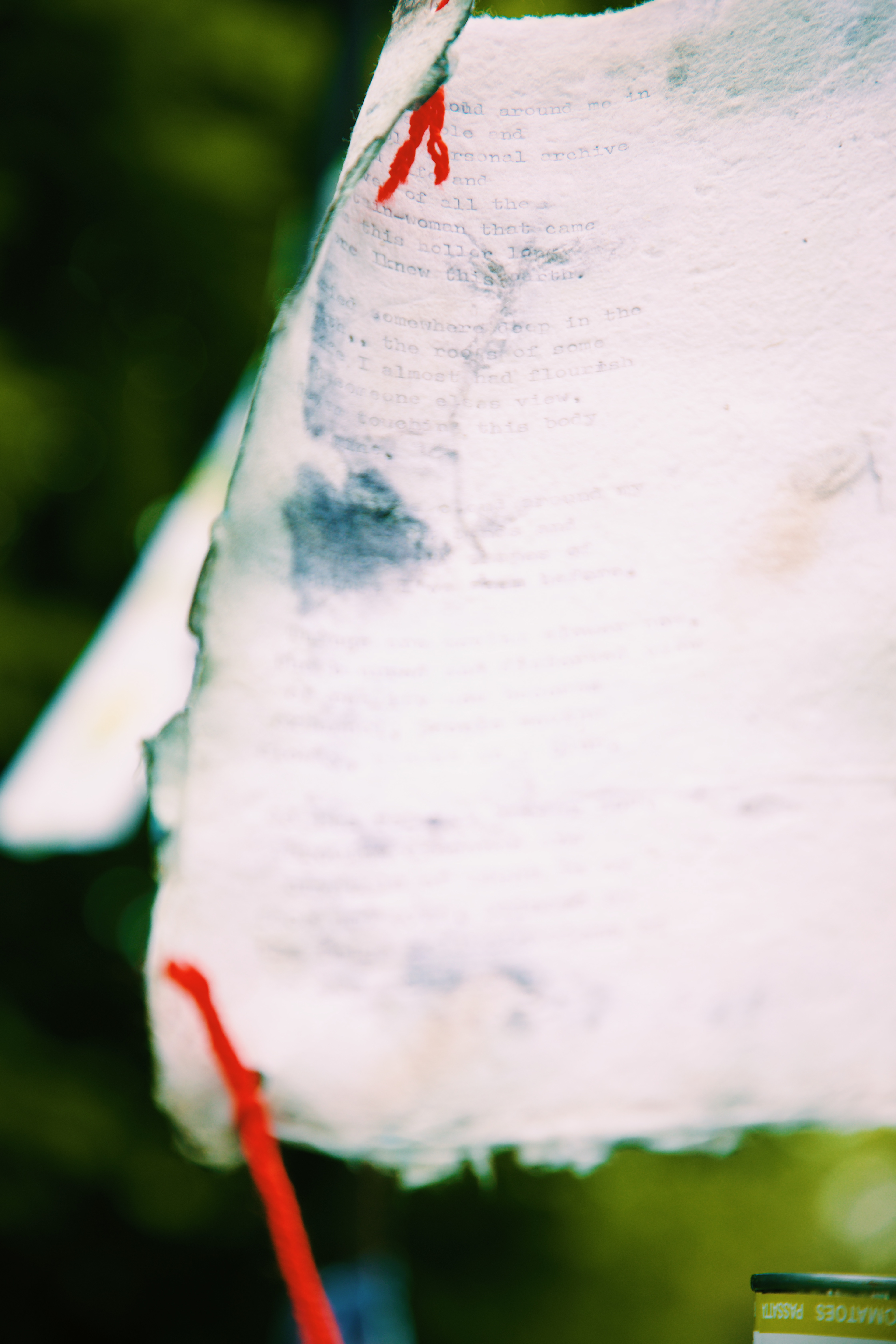 I invited the viewer to interact with the space and the strings in a very hands-on fashion - bend, reach, stand on your tip-toes, lean with the wind to see the combination of polaroid prints, emulsion lifts, cyanotype prints, and written word on found archival stationery.