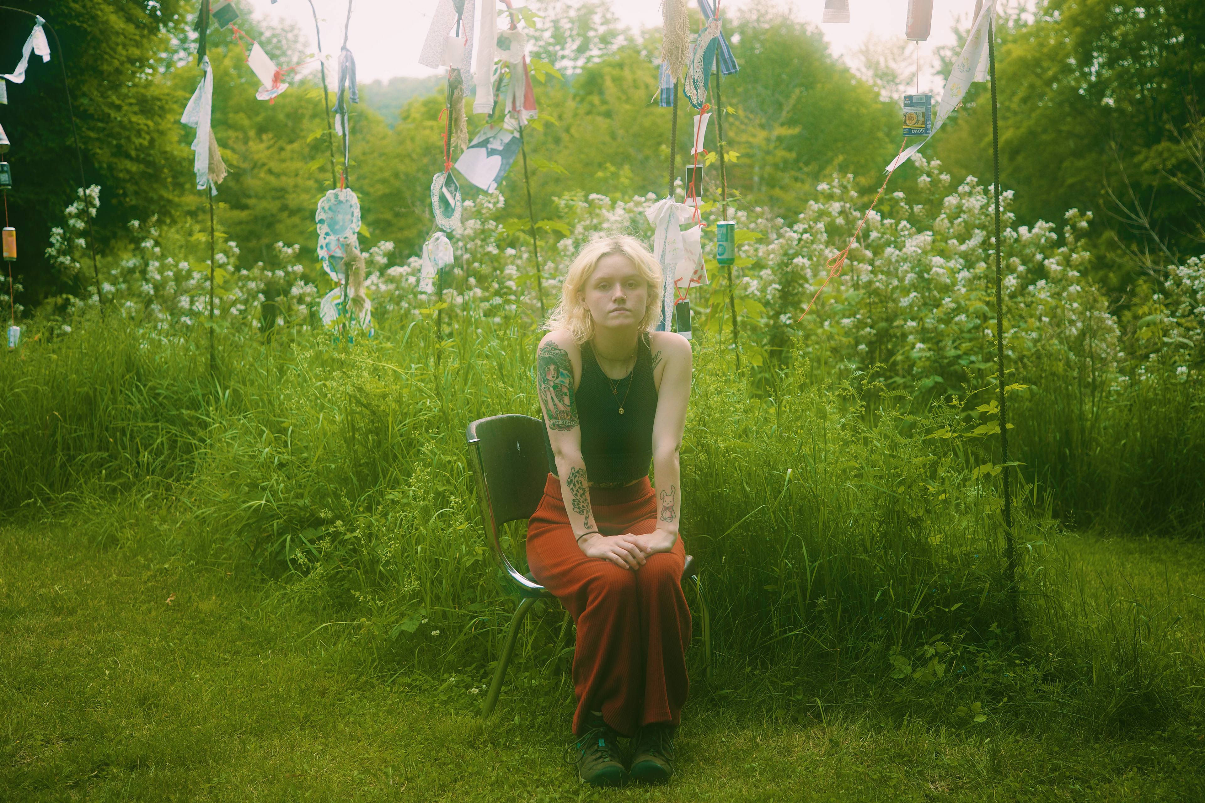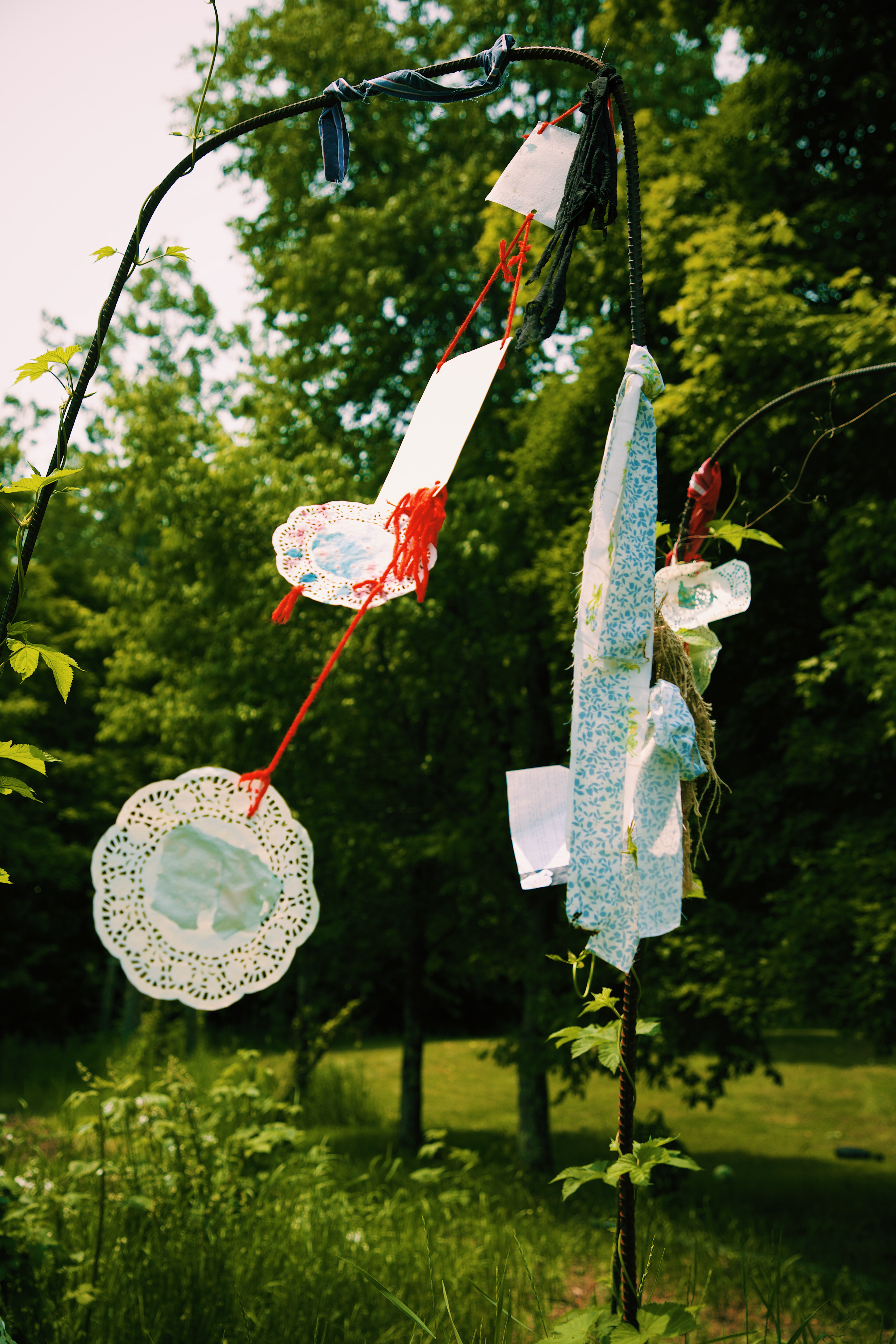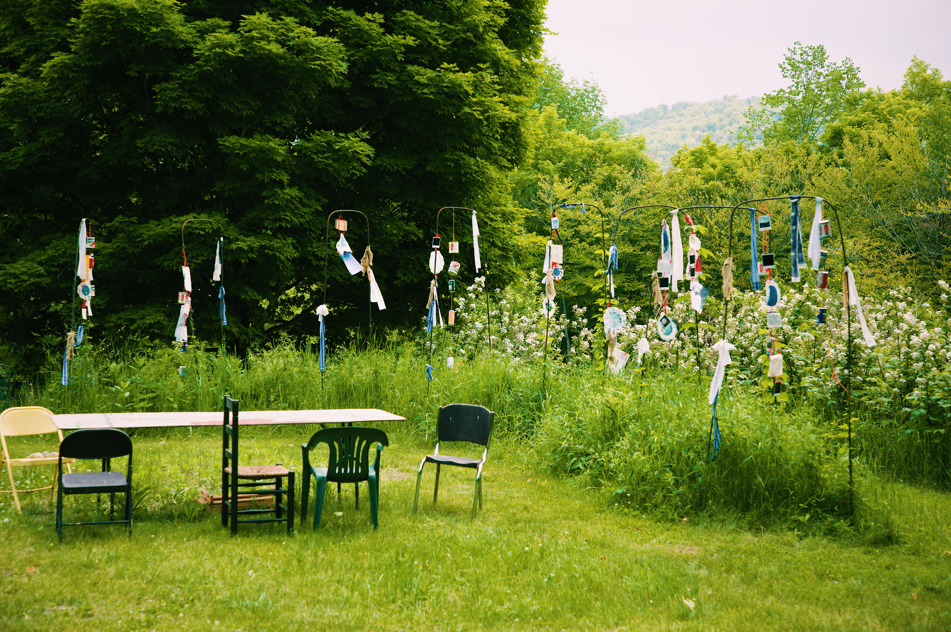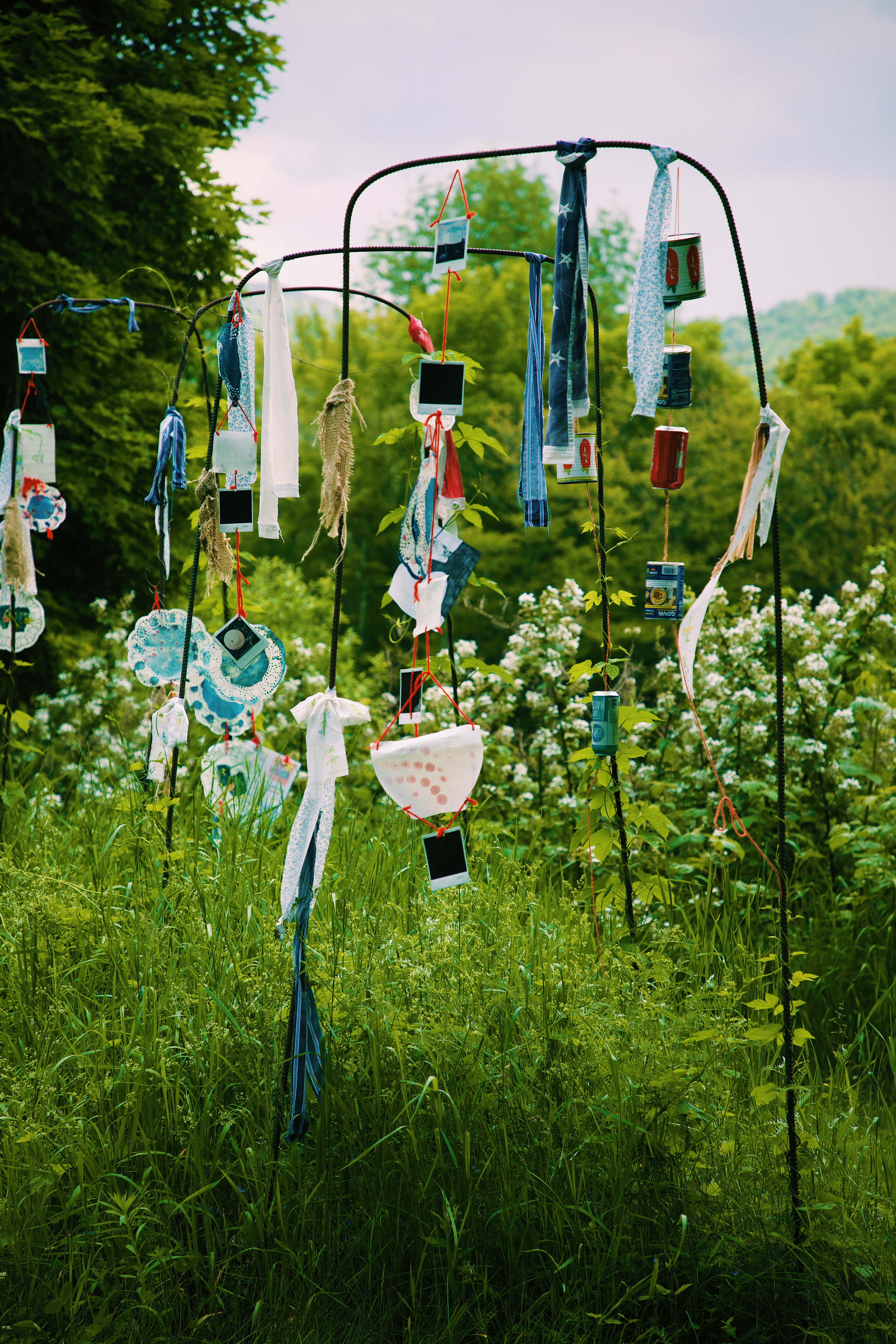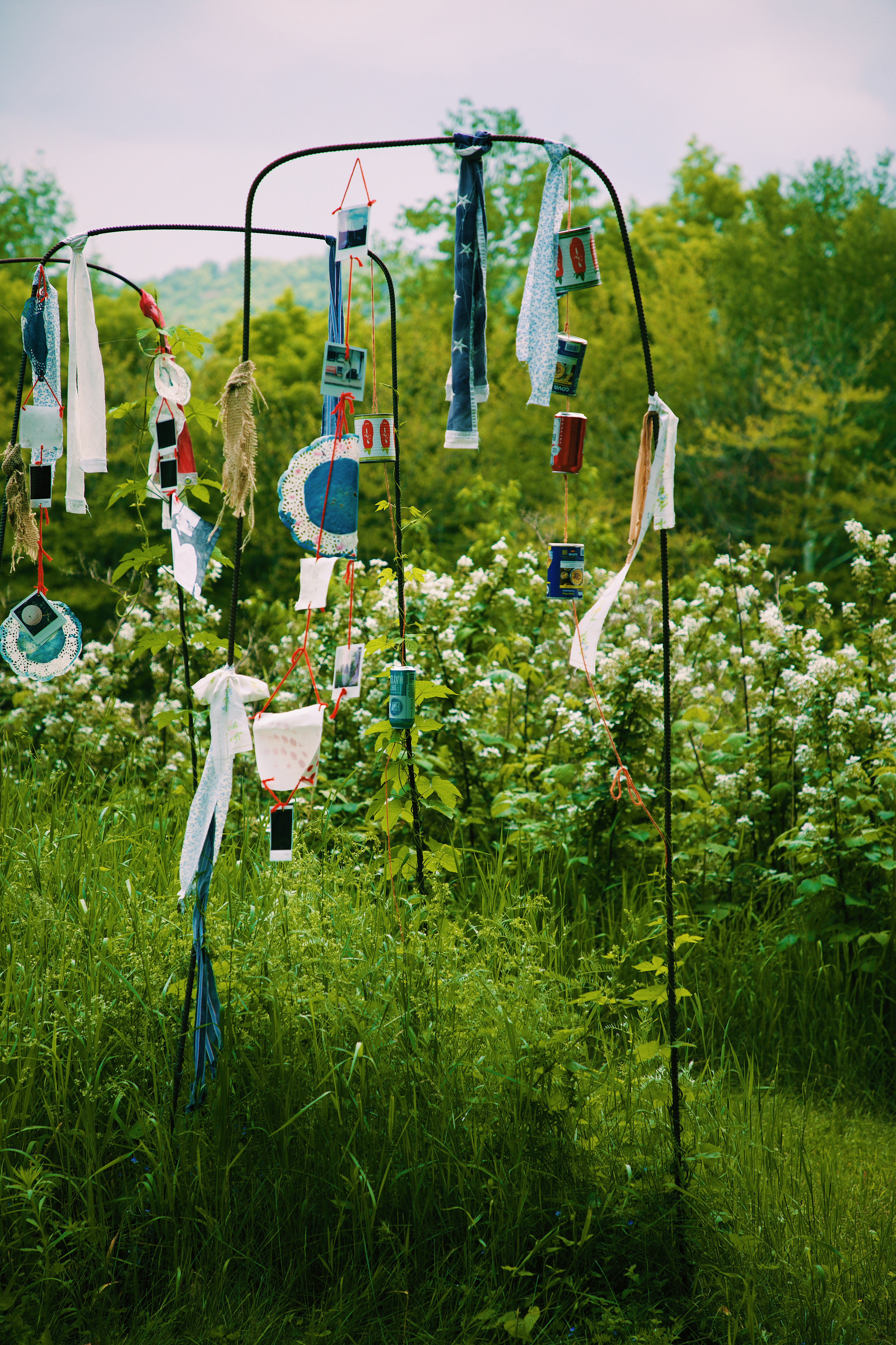 Attempting to use "unexpected creativity" in a similar fashion to the mountain-women I came from, windchimes and flags made from recycled cans, fabric, and yarn from the Sable Land decorate the garden of hops (traditionally used to brew beer), a place chosen to mirror intoxication and affected memory as a result of a long, violent history of violence and abuse to the Appalachian region.