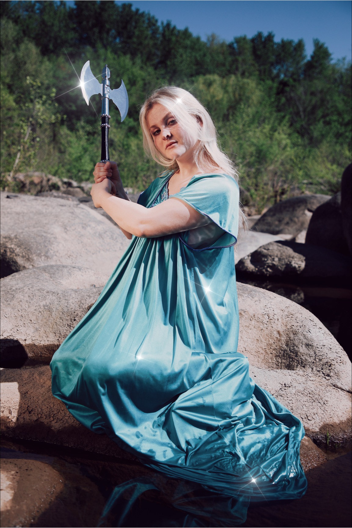 A “holler” is a Southern Appalachian colloquial slang term for a “hollow”, which is defined as “a small, sheltered valley that usually–but not necessarily–has a watercourse". Acting as a haven for the characters depicted throughout the series, our setting ("the holler") is shown through a series of vignettes capturing the characters in their all-but-real environment, jumping between the line between fantasy and reality. Discussing themes such as spirituality, grief, folklore, drug-use, and psychopathy, “the light” aims to transport the viewer into the storybook world in between fiction and their lived experience with urban Appalachian folklore. Using common Appalachian urban legends, such as the Mothman, as well as chemical-affected personal memories following a traumatic drug overdose in 2018 as inspiration, photos are used to manufacture my own Appalachian story, rejecting both the stereotype of the region as well as the trauma and drug-impacted recollections of my own childhood memory.